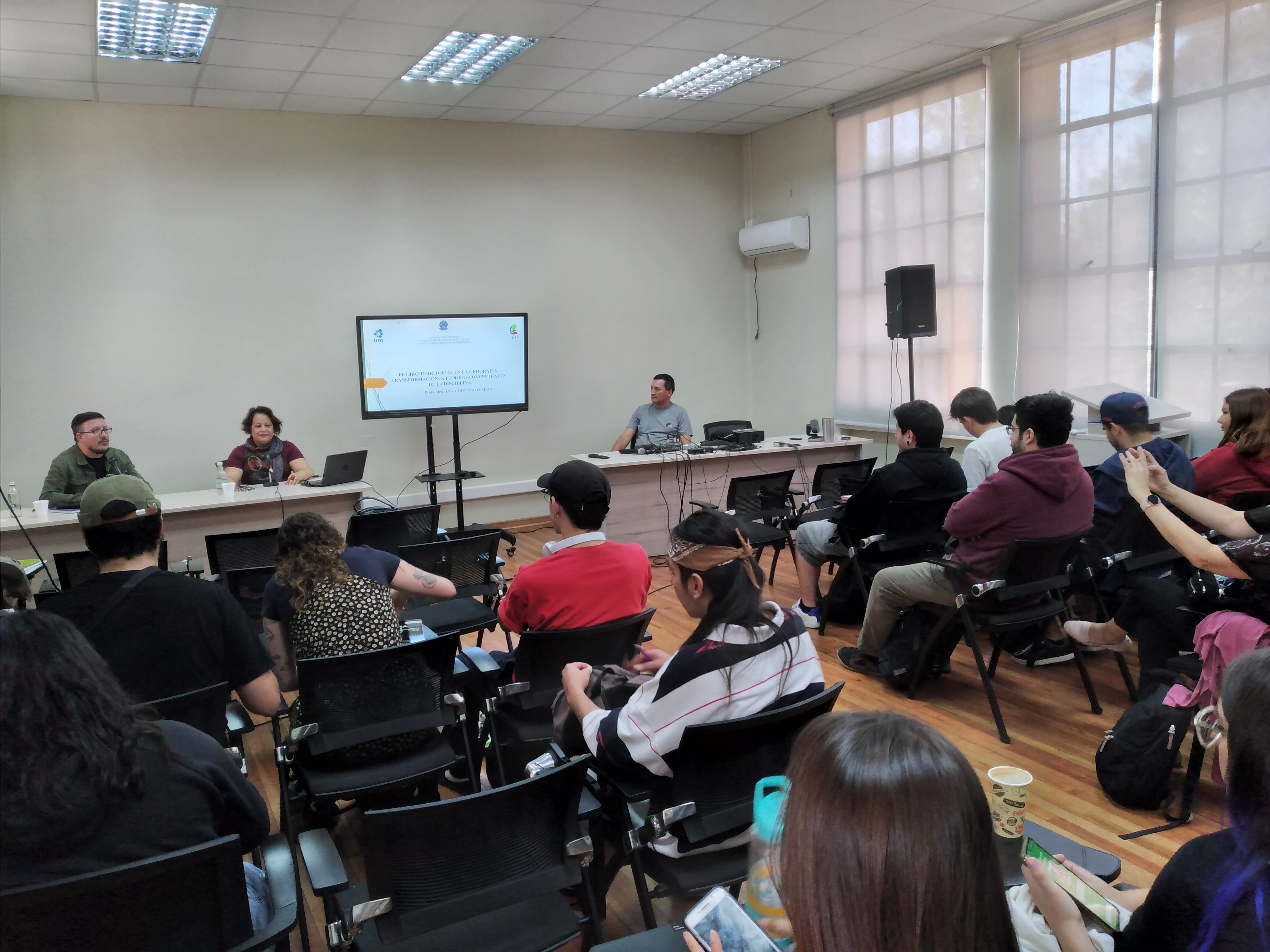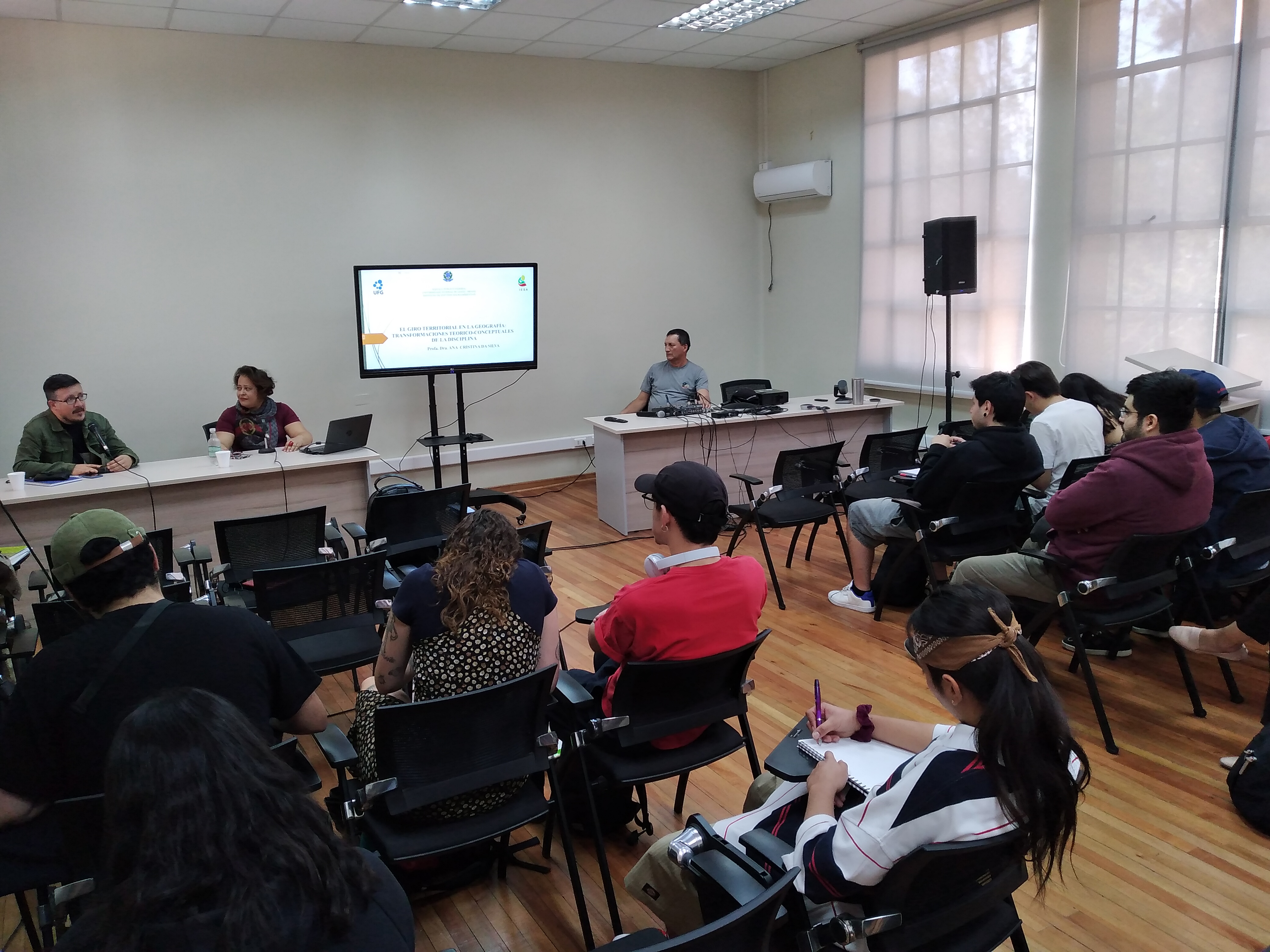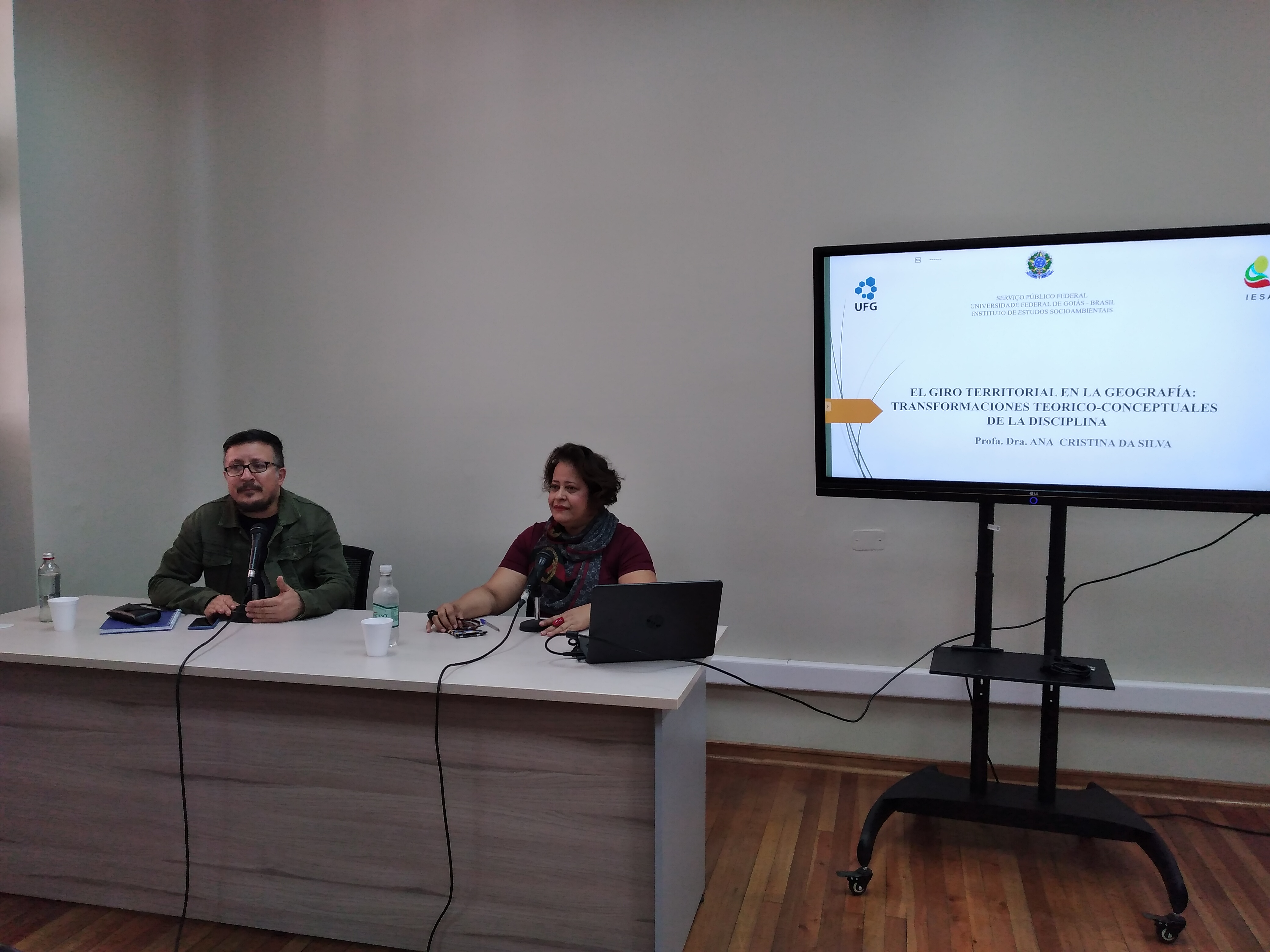 La segunda invitada fue la Dra. Ana Cristina Da Silva, investigadora y académica del Instituto de Estudios Socioambientales de la Universidad Federal de Goiás. La profesora ha sido indicada como una de las nuevas referencias en el campo de los trabajos teóricos aplicados a la geografía por los cruces reflexivos que desarrolla con el campo de la filosofía y la historia de las ciencias. Durante la cátedra trabajó los principales aspectos problemáticos que han acompañado el uso de la categoría de territorio durante el desarrollo de la disciplina geográfica, pero también cómo su significado conceptual entra en crisis cuando el uso en las ciencias humanas, en general, es reclamado sólo para fortalecer metáforas, desafectando su sentido y despolitizando su orientación.
